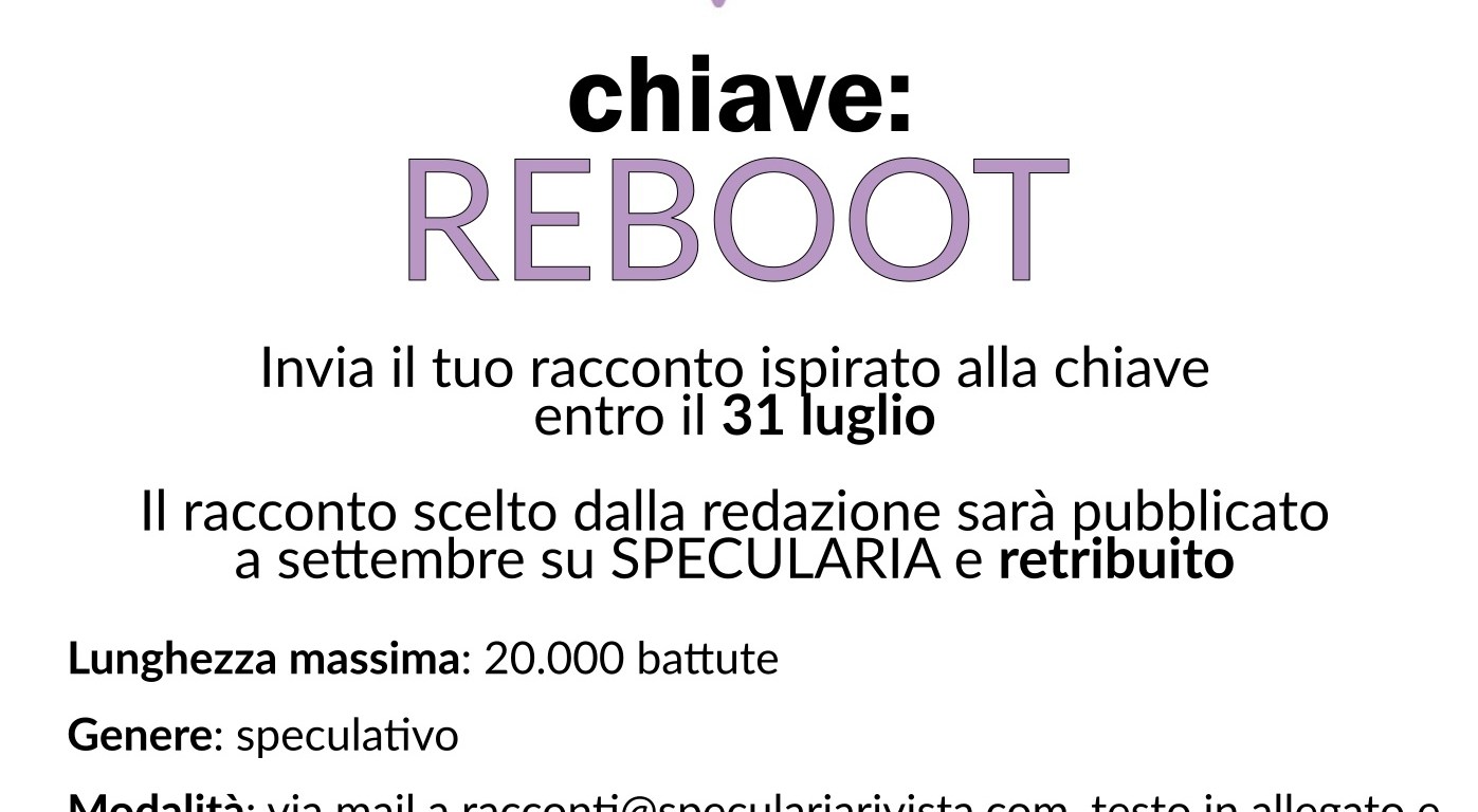 Nel mese di luglio abbiamo aperto un nuovo contest con chiave REBOOT. La partecipazione è stata molto elevata, abbiamo ricevuto 34 racconti, per quanto non tutti del tutto centrati sul tema.