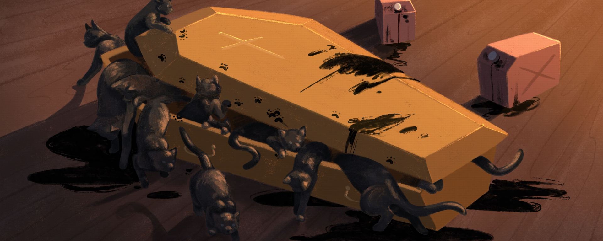 Tese la mano sull’interruttore, sentendosi ringiovanito di vent’anni. Spegnere la luce fu la cosa più vicina a un’idea che aveva avuto da tempo, e lui aveva sempre avuto più calli che idee. Clic. Piccoli respiri riempirono il buio, insieme al suono dei corpi che strisciavano l’uno sull’altro. Con le ossa mischiate da quei richiami, fece un balzo dietro lo stipite e sparò dei colpi. Le scintille illuminarono la scena tra sfuriate e lamenti. Gatti che si dimenavano per la stanza, eruttati da ammucchiate vibranti di pelo, gli avevano appena ricordato come nascessero gli incubi, ma anche quanto idiota fosse stato a sparare nella stanza dove conservava l’ultima tanica di benzina. Uno dei colpi la prese in pieno. Dei gatti andarono a fuoco, iniziando a correre per la cucina come emissari dell’inferno. Le fiamme si propagarono, tutto prese fuoco.